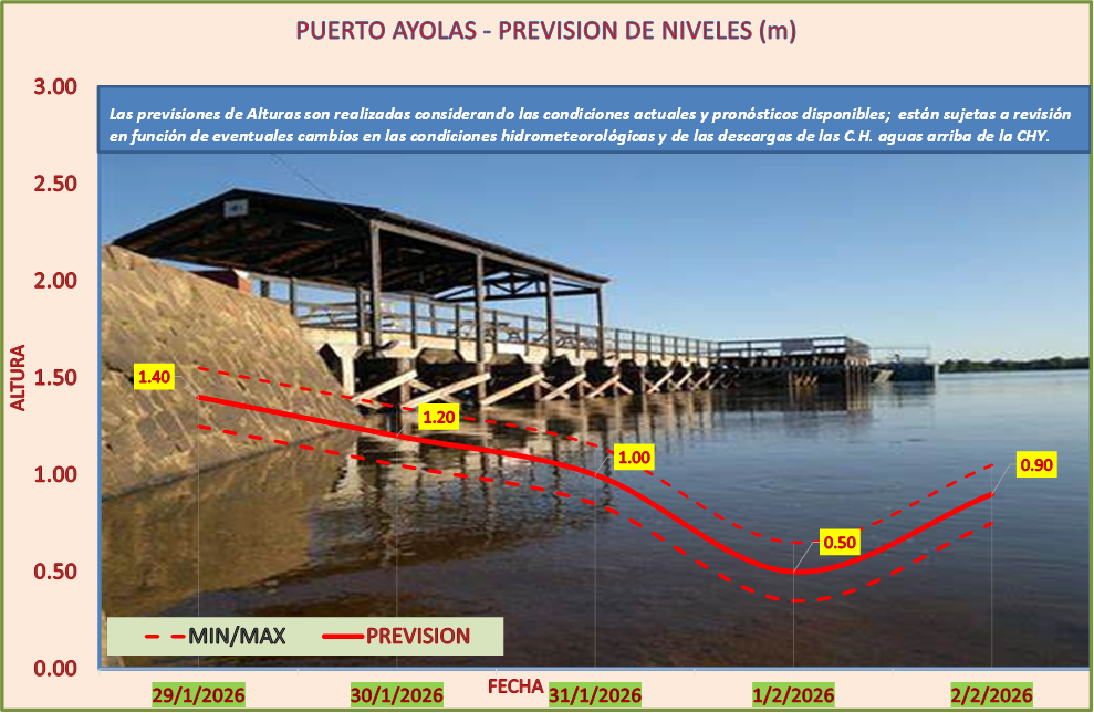 Las previsiones de Alturas son realizadas considerando las condiciones actuales y pronósticos disponibles y están sujetas a revisión en función de eventuales cambios en las condiciones hidrometeorológicas y de las descargas de las C.H. aguas arriba de la CHY.