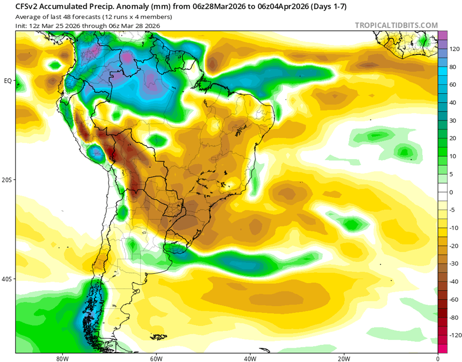 • El índice del Modo Anular del Sur (SAM, por sus siglas en inglés) se mantiene neutral al 14 de marzo de 2026. Se prevé que permanezca mayoritariamente neutral durante las próximas dos semanas.