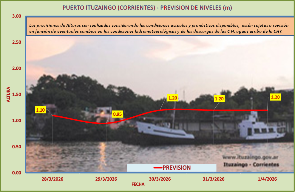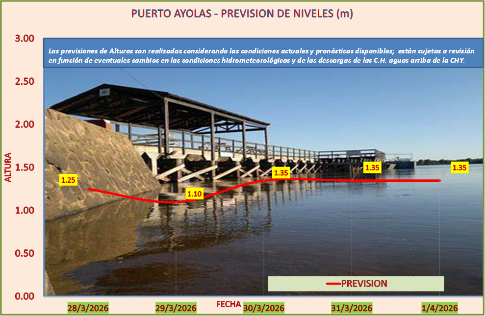 Las previsiones de Alturas son realizadas considerando las condiciones actuales y pronósticos disponibles y están sujetas a revisión en función de eventuales cambios en las condiciones hidrometeorológicas y de las descargas de las C.H. aguas arriba de la CHY.