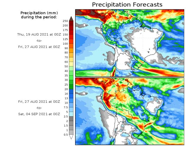 El pronóstico Hidrometeorológico del Centro Climático de referencia indica una tendencia semanal de poca significancia hidrológica en la cuenca de interés para la CHY con dispersión geográfica según sea la fuente consultada. (Ver gráfico Nro. 1).