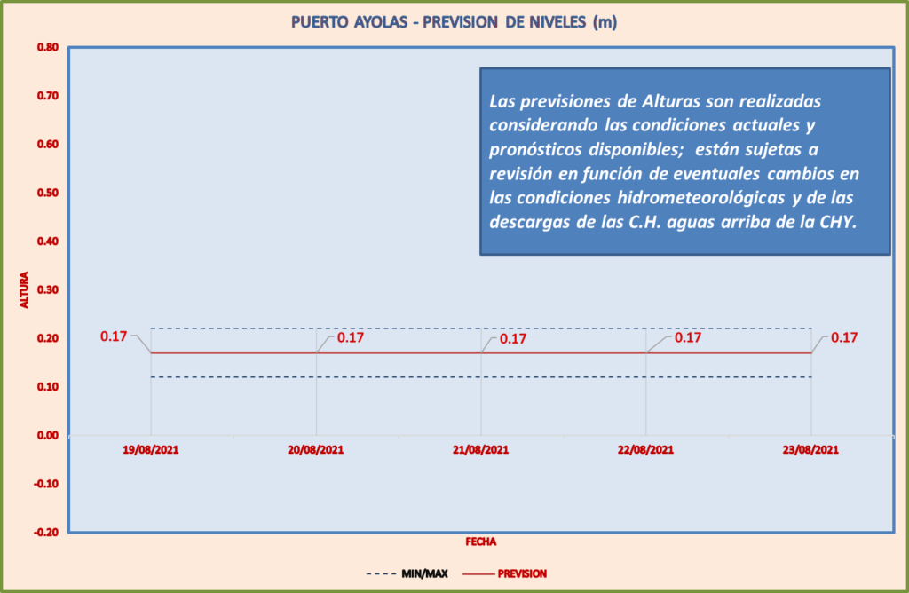 Las previsiones de Alturas son realizadas considerando las condiciones actuales y pronósticos disponibles y están sujetas a revisión en función de eventuales cambios en las condiciones hidrometeorológicas y de las descargas de las C.H. aguas arriba de la CHY.