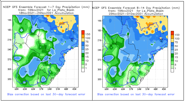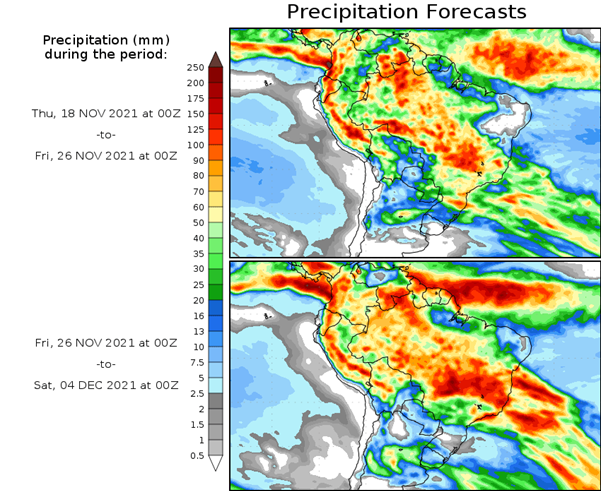 El pronóstico Hidrometeorológico del Centro Climático de referencia indica una tendencia semanal de poca significancia hidrológica en la cuenca de interés para la CHY con dispersión geográfica según sea la fuente consultada. (Ver gráfico Nro. 1).