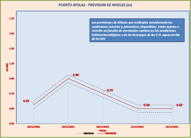 Las previsiones de Alturas son realizadas considerando las condiciones actuales y pronósticos disponibles y están sujetas a revisión en función de eventuales cambios en las condiciones hidrometeorológicas y de las descargas de las C.H. aguas arriba de la CHY.