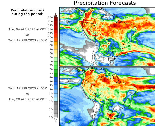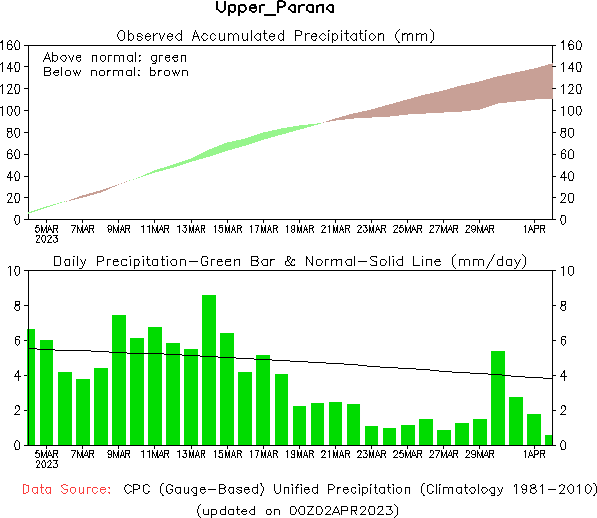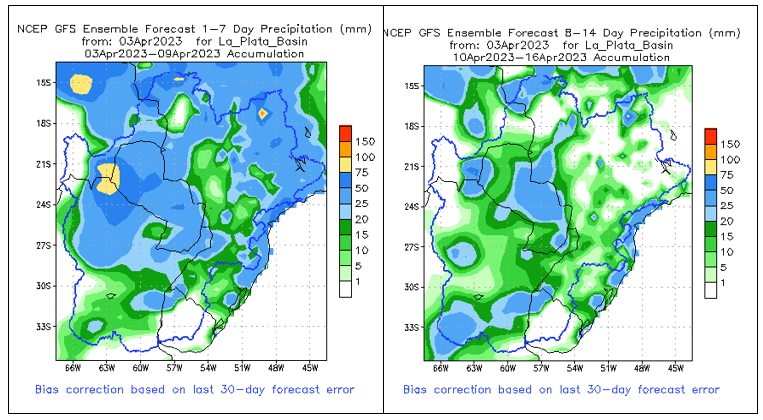 Las estimaciones de lluvias indican que en el mes de abril se observarían acumulados en volúmenes menores a lo que habitualmente llueve en este periodo, esta tendencia se tendría en gran parte del territorio nacional. Por otro lado en algunos sectores en el extremo suroeste de la Región Oriental y en algunas zonas de la Región Occidental se registrarían lluvias por sobre la normal .