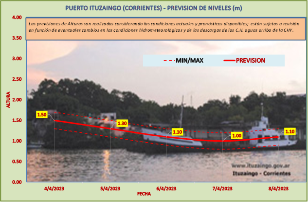 Las previsiones de Alturas son realizadas considerando las condiciones actuales y pronósticos disponibles y están sujetas a revisión en función de eventuales cambios en las condiciones hidrometeorológicas y de las descargas de las C.H. aguas arriba de la CHY.