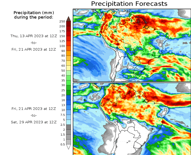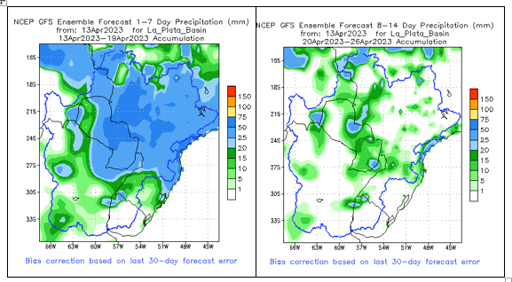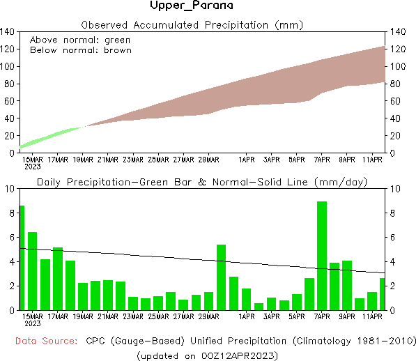El pronóstico Hidrometeorológico del Centro Climático de referencia indica una tendencia semanal de poca significancia hidrológica en la cuenca de interés para la CHY con dispersión geográfica según sea la fuente consultada. (Ver gráfico Nro. 1).