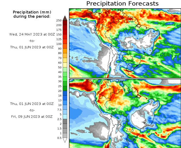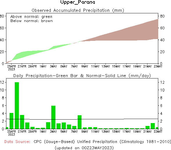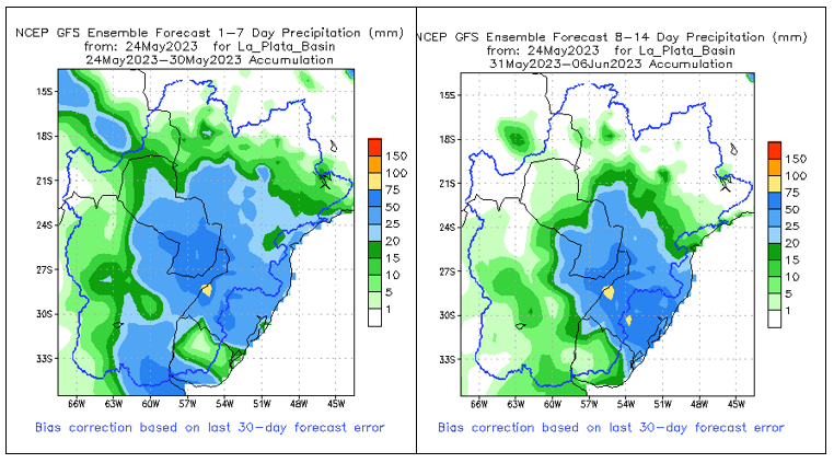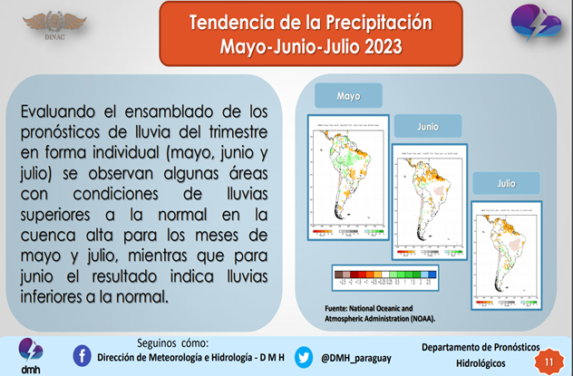 El pronóstico Hidrometeorológico del Centro Climático de referencia indica una tendencia semanal de poca significancia hidrológica en la cuenca de interés para la CHY con dispersión geográfica según sea la fuente consultada. (Ver gráfico Nro. 1).