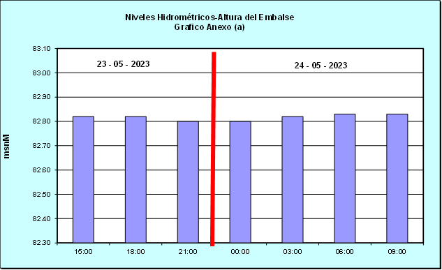Nivel de Ayer (06:00 hs) = 82.89 mSNM Nivel de Hoy (06:00 hs) = 82.83 mSNM