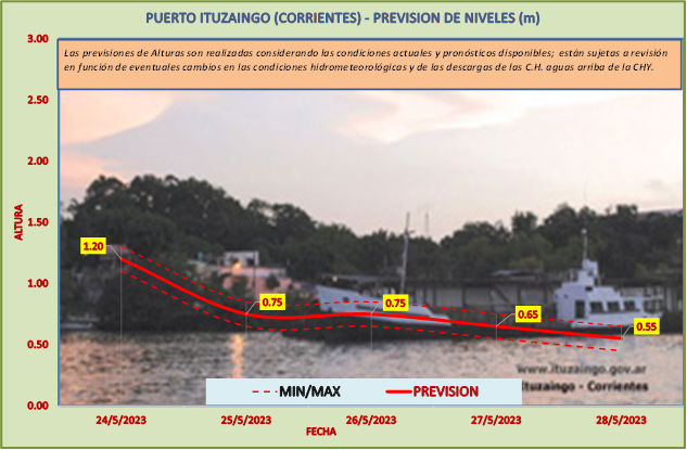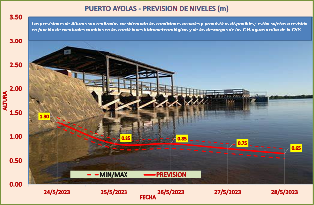 Las previsiones de Alturas son realizadas considerando las condiciones actuales y pronósticos disponibles y están sujetas a revisión en función de eventuales cambios en las condiciones hidrometeorológicas y de las descargas de las C.H. aguas arriba de la CHY.