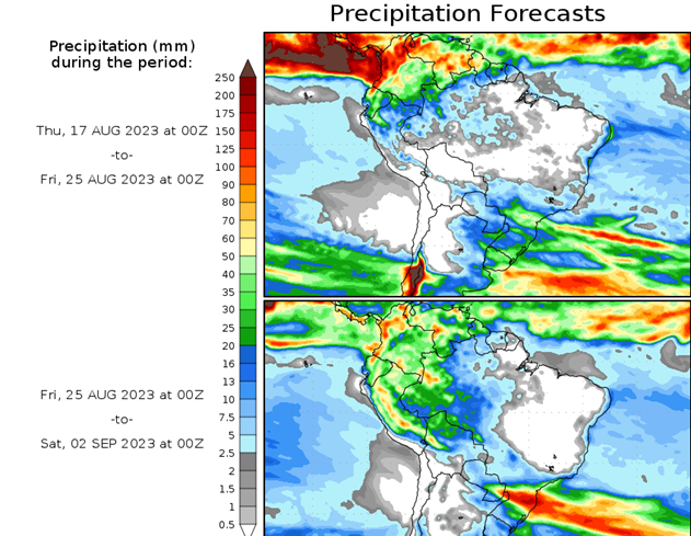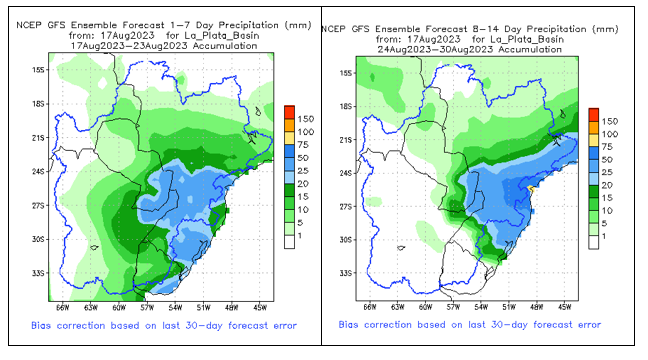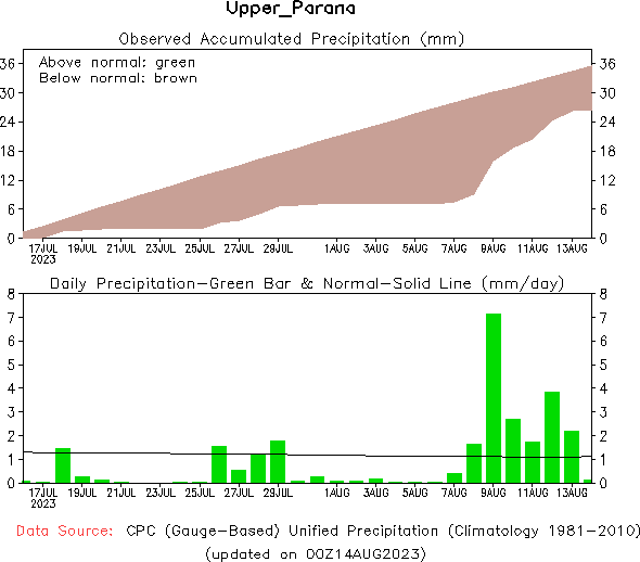 El pronóstico Hidrometeorológico del Centro Climático de referencia indica una tendencia semanal de poca significancia hidrológica en la cuenca de interés para la CHY con dispersión geográfica según sea la fuente consultada. (Ver gráfico Nro. 1).
