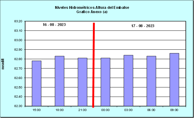 Nivel de Ayer (06:00 hs) = 82.85 mSNM Nivel de Hoy (06:00 hs) = 82.83 mSNM