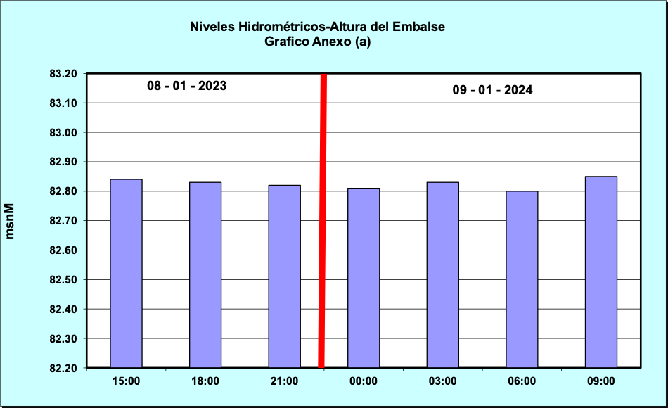Nivel de Ayer (06:00 hs) = 82.87 mSNM Nivel de Hoy (06:00 hs) = 82.83 mSNM