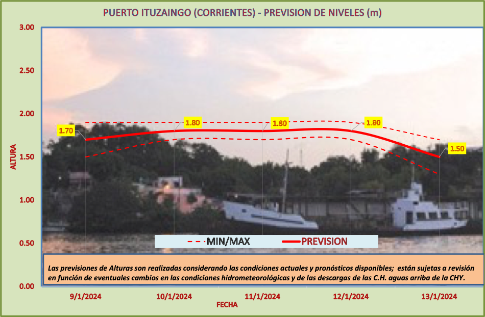La evolución de índices climáticos publicados por organismos especializados de referencia, vinculados con la previsión del fenómeno caracterizado como “El Niño”, hace prever con un grado de probabilidad alto, que durante el periodo enero y marzo 2024 podrían verificarse eventos hidrológicos asociados a situaciones de aguas altas.