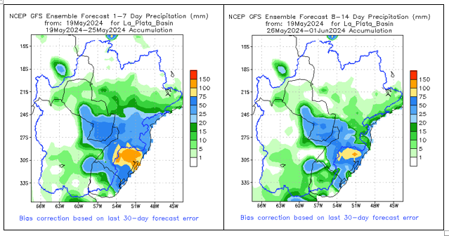 El pronóstico Hidrometeorológico del Centro Climático de referencia indica una tendencia semanal de leve significancia hidrológica en la cuenca de interés para la CHY con dispersión geográfica según sea la fuente consultada. (Ver gráfico Nro. 1).