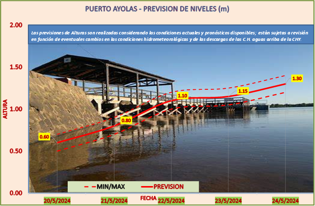 Las previsiones de Alturas son realizadas considerando las condiciones actuales y pronósticos disponibles y están sujetas a revisión en función de eventuales cambios en las condiciones hidrometeorológicas y de las descargas de las C.H. aguas arriba de la CHY.