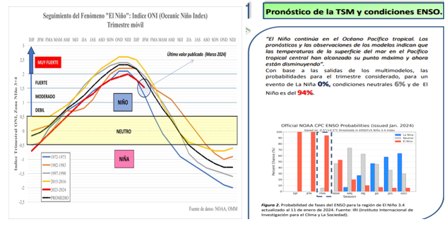 La Perspectiva ENSO se encuentra actualmente en ‘Vigilancia de La Niña’, lo que significa que hay algunas señales de que La Niña podría formarse en el Océano Pacífico más adelante en 2024. Los indicadores atmosféricos y oceánicos se encuentran actualmente dentro de los umbrales neutrales de ENSO.