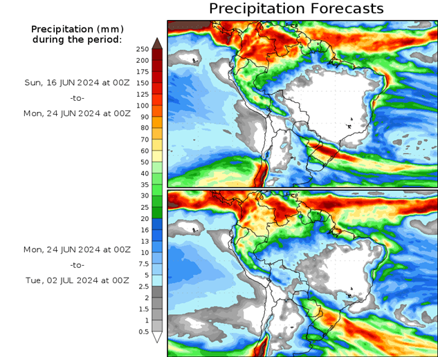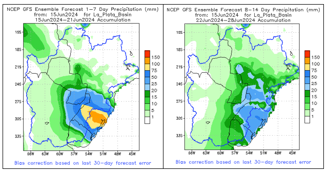El pronóstico Hidrometeorológico del Centro Climático de referencia indica una tendencia semanal de poca significancia hidrológica en la cuenca de interés para la CHY con dispersión geográfica según sea la fuente consultada. (Ver gráfico Nro. 1).