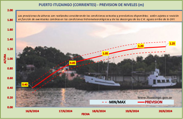 Las previsiones de Alturas son realizadas considerando las condiciones actuales y pronósticos disponibles y están sujetas a revisión en función de eventuales cambios en las condiciones hidrometeorológicas y de las descargas de las C.H. aguas arriba de la CHY.