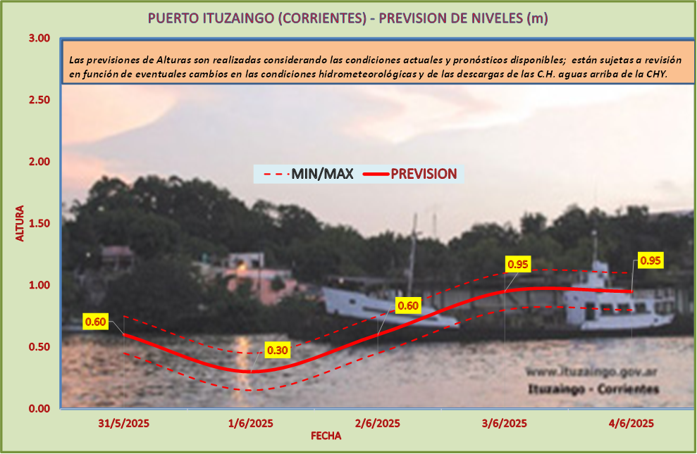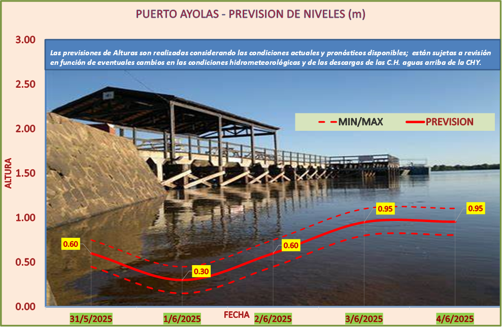 Las previsiones de Alturas son realizadas considerando las condiciones actuales y pronósticos disponibles y están sujetas a revisión en función de eventuales cambios en las condiciones hidrometeorológicas y de las descargas de las C.H. aguas arriba de la CHY.
