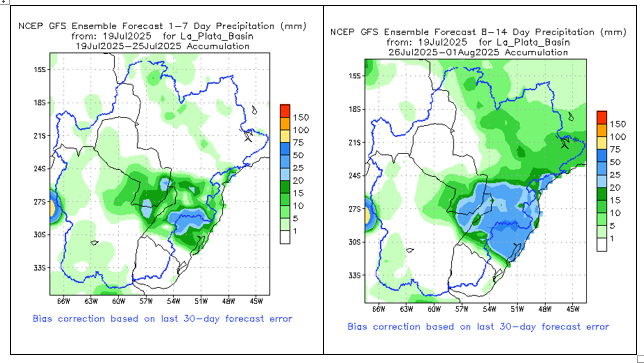 El pronóstico Hidrometeorológico del Centro Climático de referencia indica una tendencia semanal de poca significancia hidrológica en la cuenca de interés para la CHY con dispersión geográfica según sea la fuente consultada. (Ver gráfico Nro. 1).
