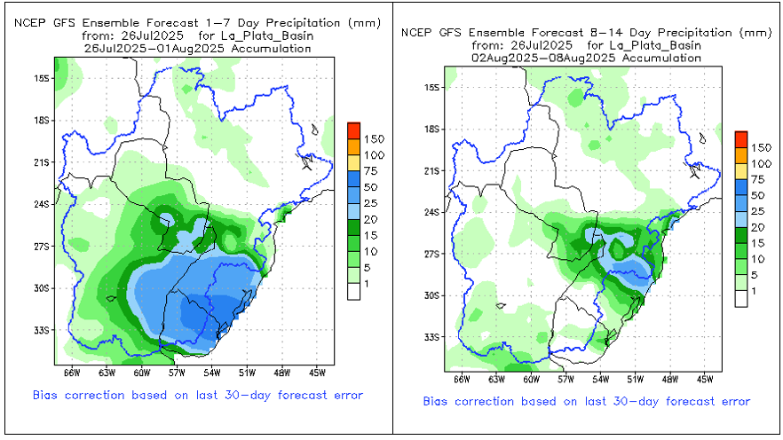 El pronóstico Hidrometeorológico del Centro Climático de referencia indica una tendencia semanal de poca significancia hidrológica en la cuenca de interés para la CHY con dispersión geográfica según sea la fuente consultada. (Ver gráfico Nro. 1).