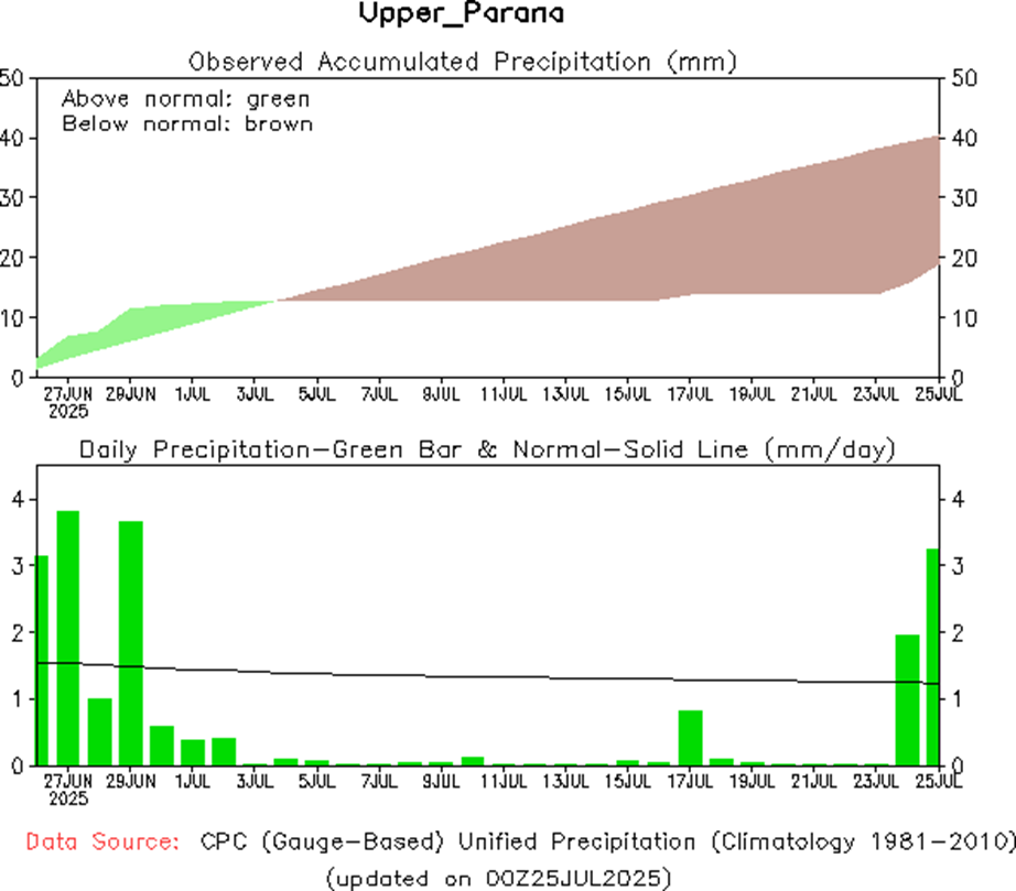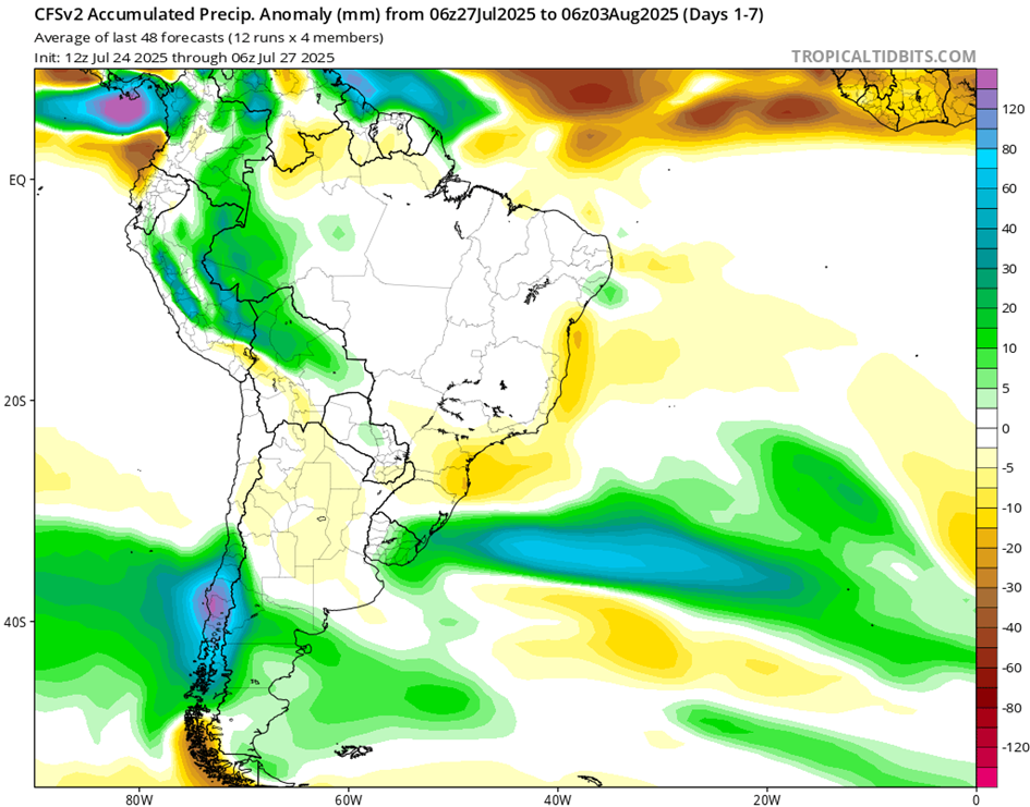 El fenómeno de El Niño-Oscilación del Sur (ENOS) es neutro. El último valor de Niño 3.4 para la semana que finalizó el 8 de junio fue de -0,07 °C. Los valores neutros de ENOS se encuentran entre -0,8 °C y +0,8 °C.