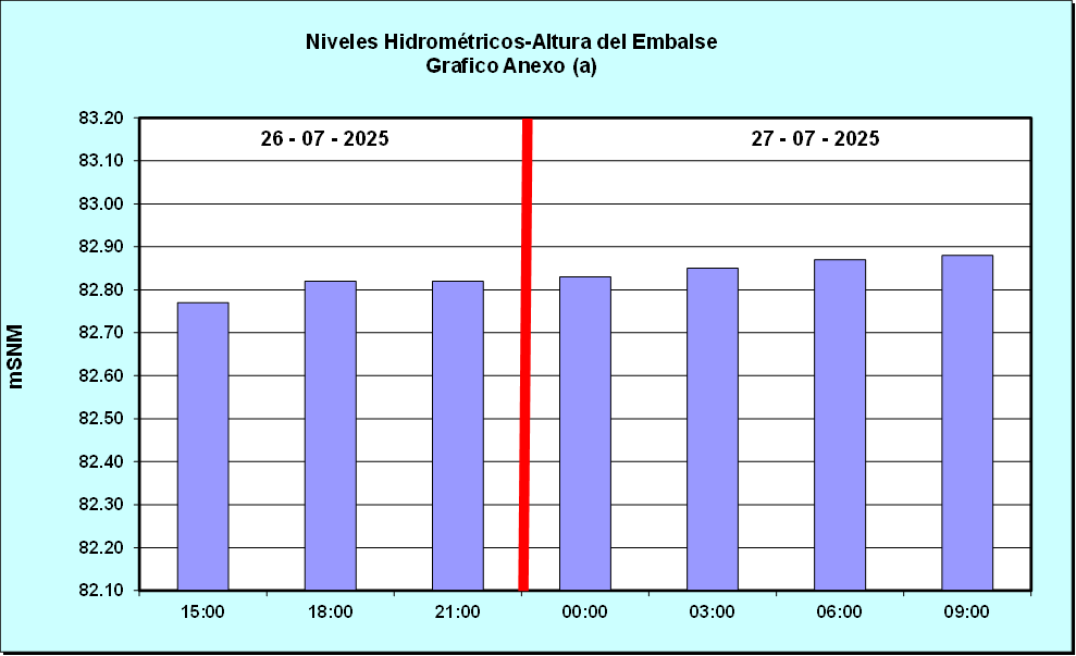 Nivel de Ayer (06:00 hs) = 82.78 mSNM Nivel de Hoy (06:00 hs) = 82.87 mSNM