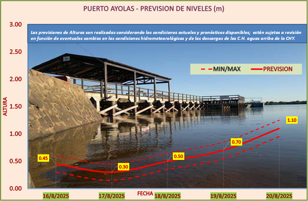 Las previsiones de Alturas son realizadas considerando las condiciones actuales y pronósticos disponibles y están sujetas a revisión en función de eventuales cambios en las condiciones hidrometeorológicas y de las descargas de las C.H. aguas arriba de la CHY.
