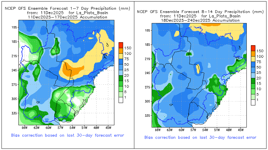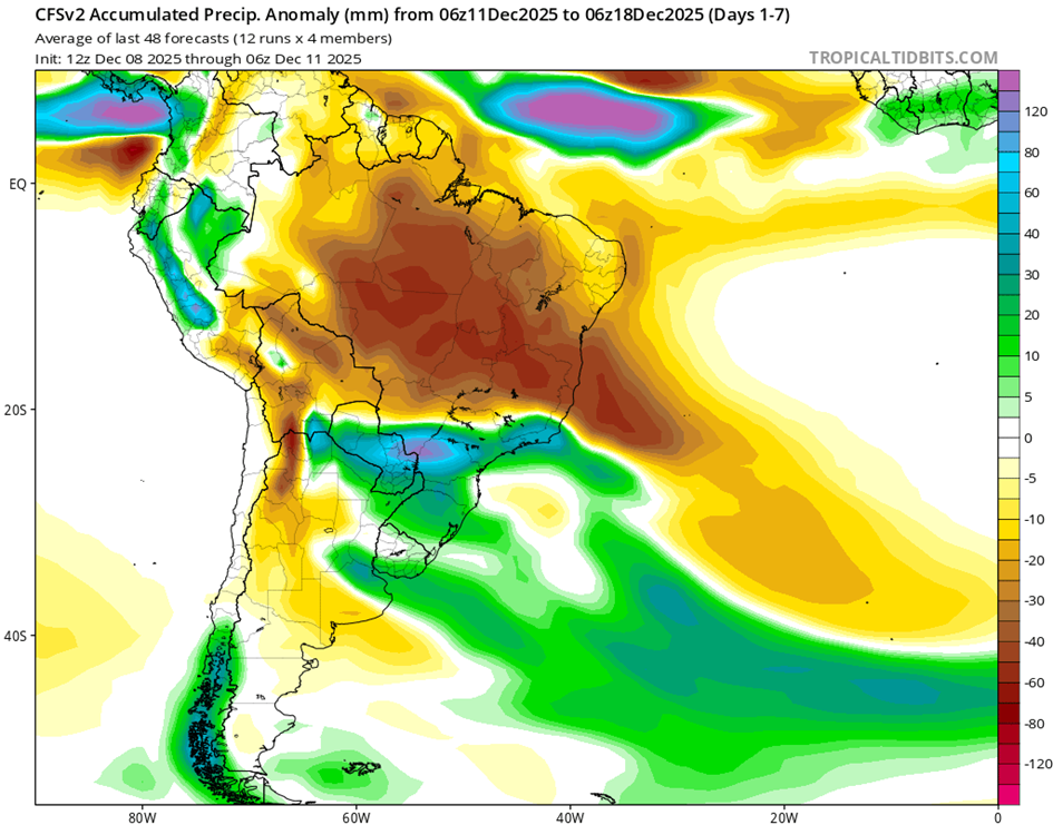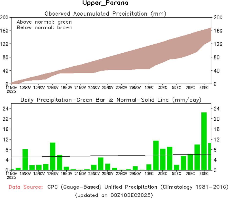 • El índice del Modo Anular del Sur (SAM) se mantiene neutral al 21 de noviembre de 2025. Se prevé que se torne negativo durante la próxima semana. Sin embargo, existe un amplio rango de posibles resultados, lo que indica una mayor incertidumbre hacia diciembre.