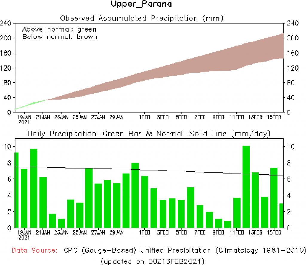 El pronóstico Hidrometeorológico del Centro Climático de referencia indica una tendencia semanal de poca significancia hidrológica en la cuenca de interés para la CHY con dispersión geográfica según sea la fuente consultada. (Ver gráfico Nro. 1).