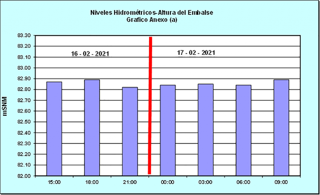 “Las variaciones oscilantes del día podrían estar en el entorno de los 20 cm en más o en menos asociados a modulaciones de potencia en la CHY, y a los factores meteorológicos locales puntuales”.