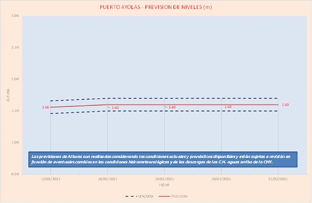 Las previsiones de Alturas son realizadas considerando las condiciones actuales y pronósticos disponibles y están sujetas a revisión en función de eventuales cambios en las condiciones hidrometeorológicas y de las descargas de las C.H. aguas arriba de la CHY.