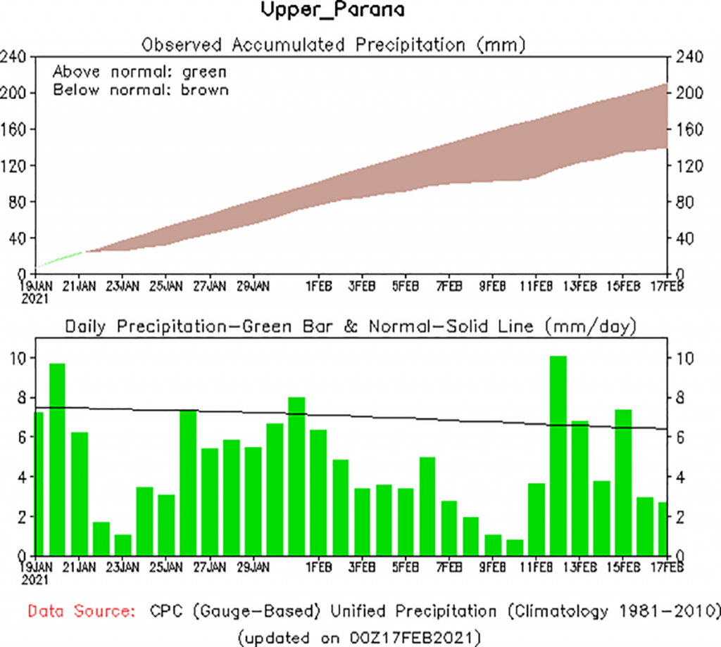 El pronóstico Hidrometeorológico del Centro Climático de referencia indica una tendencia semanal de poca significancia hidrológica en la cuenca de interés para la CHY con dispersión geográfica según sea la fuente consultada. (Ver gráfico Nro. 1).