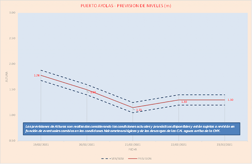 Las previsiones de Alturas son realizadas considerando las condiciones actuales y pronósticos disponibles y están sujetas a revisión en función de eventuales cambios en las condiciones hidrometeorológicas y de las descargas de las C.H. aguas arriba de la CHY.