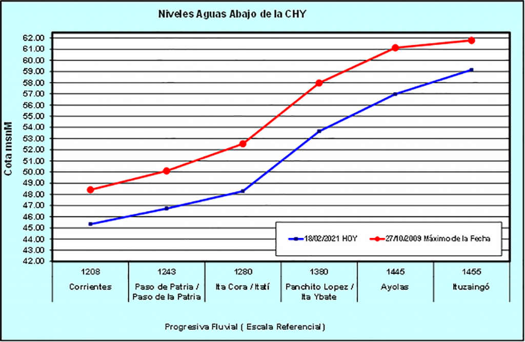 REFERENCIA: a modo de información – valores que originan riesgos de inundación en la zona de Ayolas.