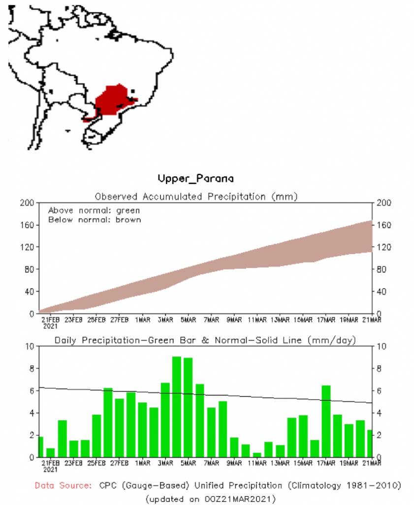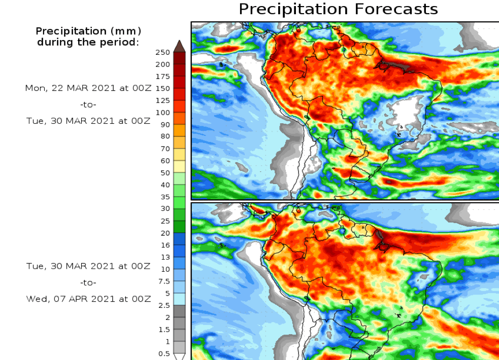 El pronóstico Hidrometeorológico del Centro Climático de referencia indica una tendencia semanal de poca significancia hidrológica en la cuenca de interés para la CHY con dispersión geográfica según sea la fuente consultada. (Ver gráfico Nro. 1).