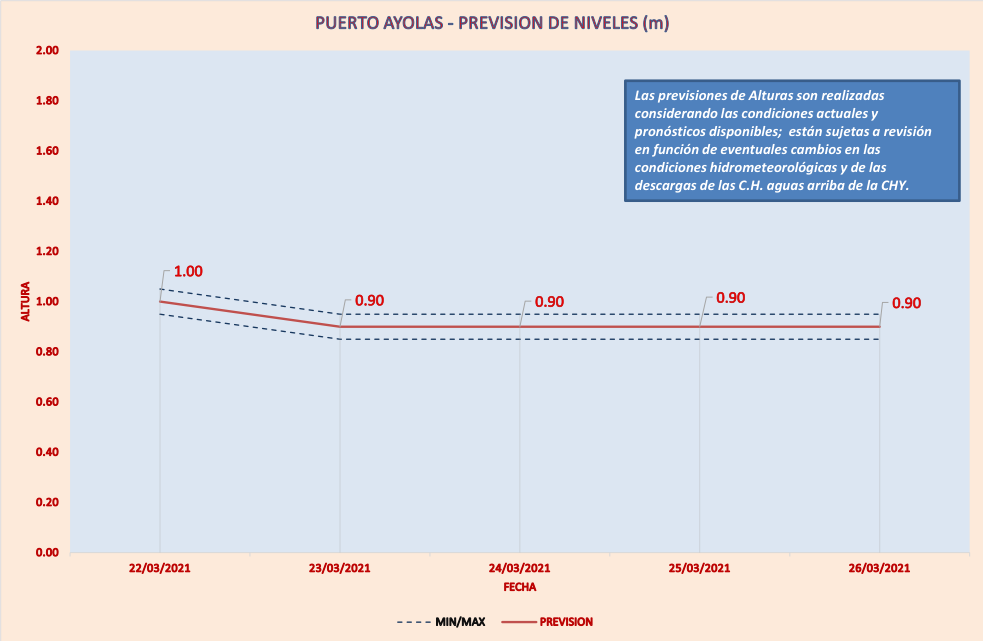 Las previsiones de Alturas son realizadas considerando las condiciones actuales y pronósticos disponibles y están sujetas a revisión en función de eventuales cambios en las condiciones hidrometeorológicas y de las descargas de las C.H. aguas arriba de la CHY.