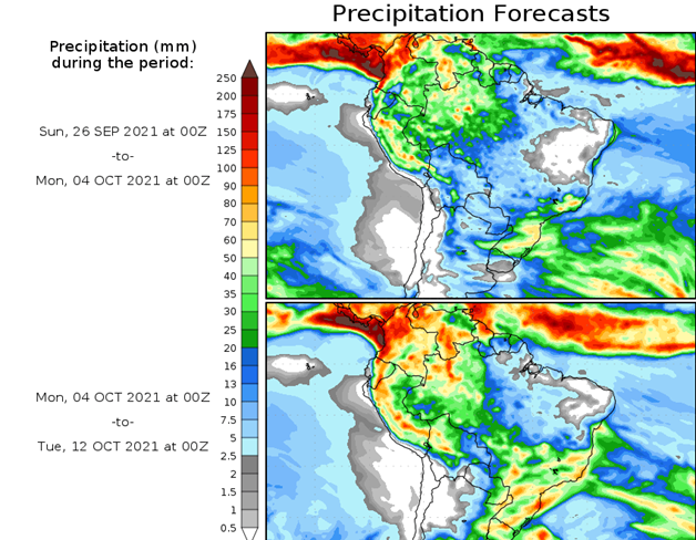 El pronóstico Hidrometeorológico del Centro Climático de referencia indica una tendencia semanal de poca significancia hidrológica en la cuenca de interés para la CHY con dispersión geográfica según sea la fuente consultada. (Ver gráfico Nro. 1).