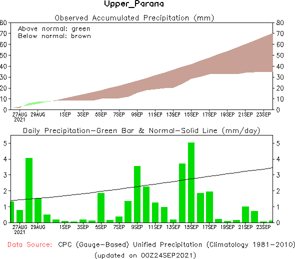 Los embalses de acumulación del Brasil que se ubican en la cuenca alta del río Paraná, aguas arriba de la Central Hidroeléctrica de Yacyretá, se encuentran con volúmenes útiles y niveles muy por debajo de lo normal debido a las escasas precipitaciones registradas.
