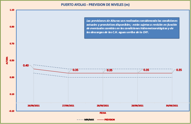 Las previsiones de Alturas son realizadas considerando las condiciones actuales y pronósticos disponibles y están sujetas a revisión en función de eventuales cambios en las condiciones hidrometeorológicas y de las descargas de las C.H. aguas arriba de la CHY.