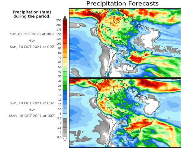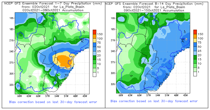 El pronóstico Hidrometeorológico del Centro Climático de referencia indica una tendencia semanal de poca significancia hidrológica en la cuenca de interés para la CHY con dispersión geográfica según sea la fuente consultada. (Ver gráfico Nro. 1).