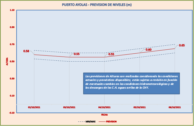 Las previsiones de Alturas son realizadas considerando las condiciones actuales y pronósticos disponibles y están sujetas a revisión en función de eventuales cambios en las condiciones hidrometeorológicas y de las descargas de las C.H. aguas arriba de la CHY.