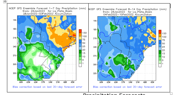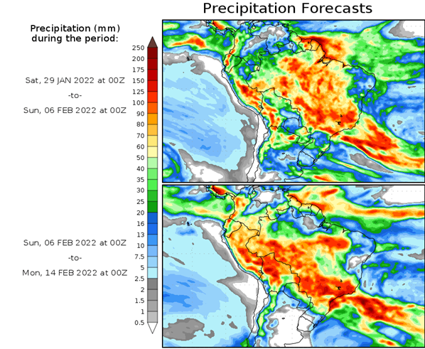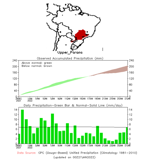 El pronóstico Hidrometeorológico del Centro Climático de referencia indica una tendencia semanal de poca significancia hidrológica en la cuenca de interés para la CHY con dispersión geográfica según sea la fuente consultada. (Ver gráfico Nro. 1).