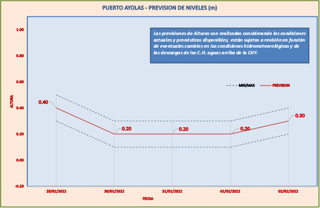 Las previsiones de Alturas son realizadas considerando las condiciones actuales y pronósticos disponibles y están sujetas a revisión en función de eventuales cambios en las condiciones hidrometeorológicas y de las descargas de las C.H. aguas arriba de la CHY.