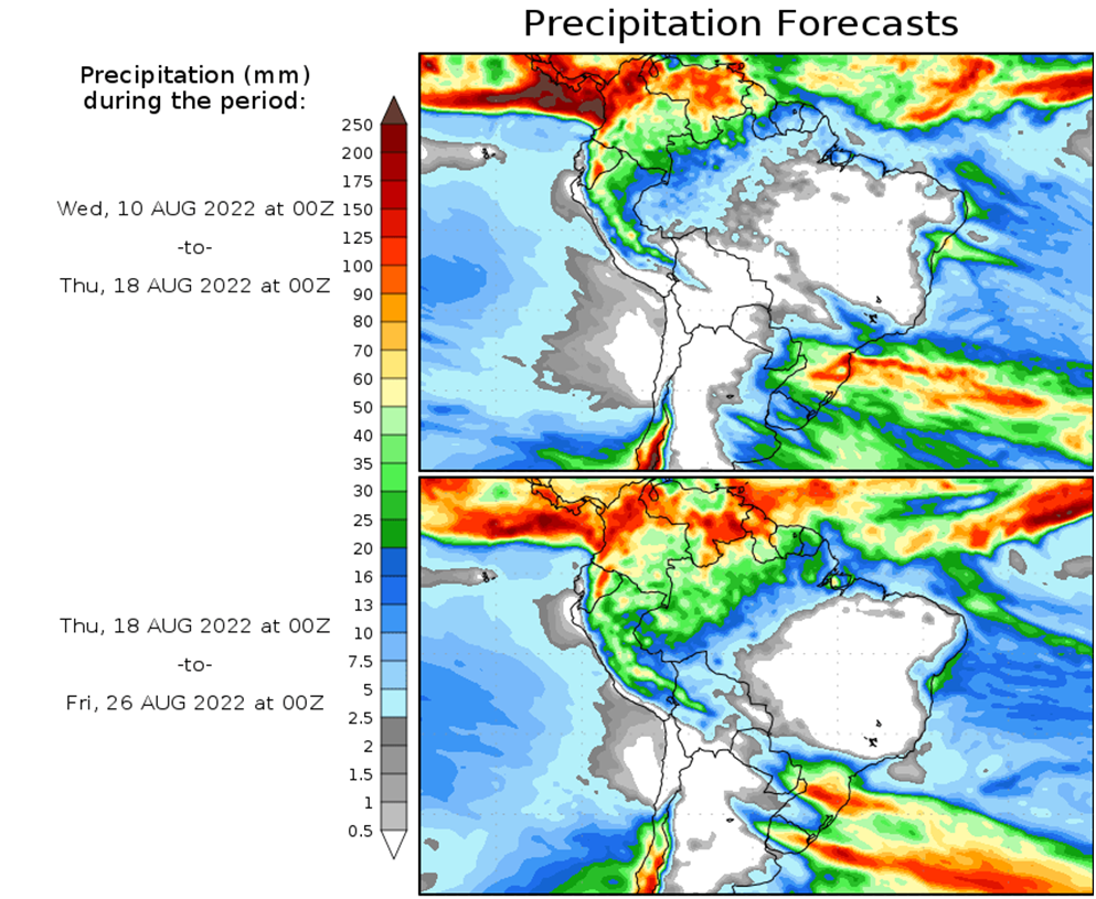 El pronóstico Hidrometeorológico del Centro Climático de referencia indica una tendencia semanal de poca significancia hidrológica en la cuenca de interés para la CHY con dispersión geográfica según sea la fuente consultada. (Ver gráfico Nro. 1).