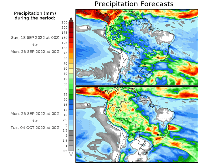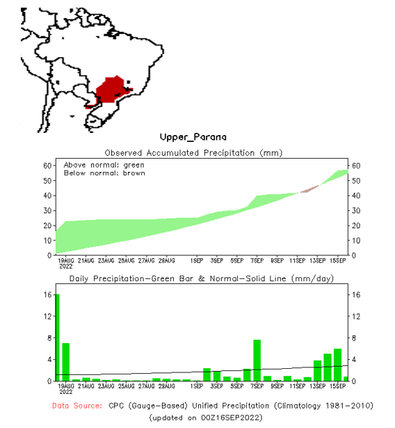 El pronóstico Hidrometeorológico del Centro Climático de referencia indica una tendencia semanal de poca significancia hidrológica en la cuenca de interés para la CHY con dispersión geográfica según sea la fuente consultada. (Ver gráfico Nro. 1).