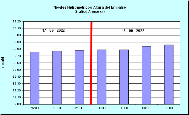 Nivel de Ayer (06:00 hs) = 82.72 mSNM Nivel de Hoy (06:00 hs) = 82.84 Msnm