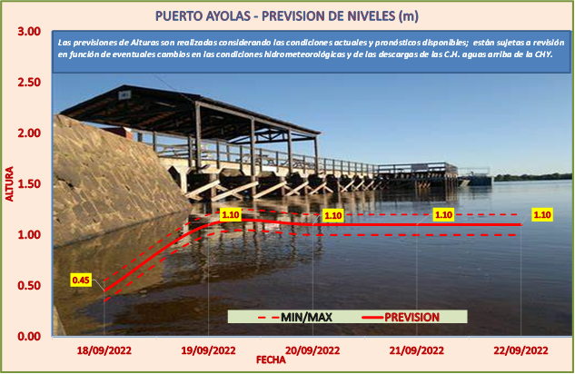 Las previsiones de Alturas son realizadas considerando las condiciones actuales y pronósticos disponibles y están sujetas a revisión en función de eventuales cambios en las condiciones hidrometeorológicas y de las descargas de las C.H. aguas arriba de la CHY.