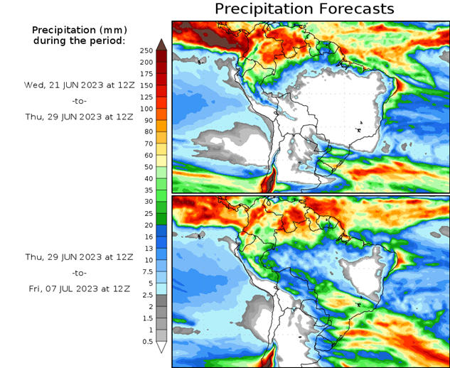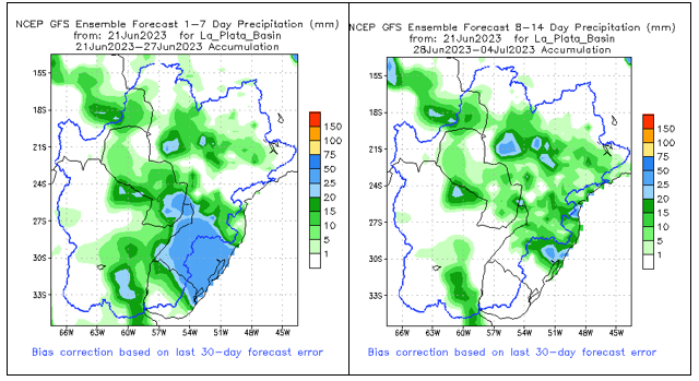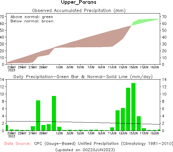 El pronóstico Hidrometeorológico del Centro Climático de referencia indica una tendencia semanal de poca significancia hidrológica en la cuenca de interés para la CHY con dispersión geográfica según sea la fuente consultada. (Ver gráfico Nro. 1).