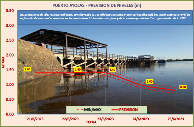 Las previsiones de Alturas son realizadas considerando las condiciones actuales y pronósticos disponibles y están sujetas a revisión en función de eventuales cambios en las condiciones hidrometeorológicas y de las descargas de las C.H. aguas arriba de la CHY.